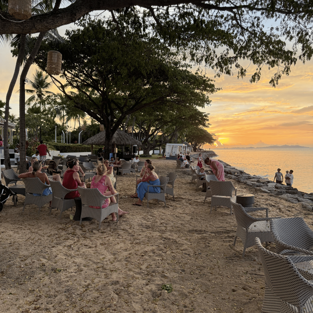 As the sun set, the group returned to the mainland for a relaxed evening at Port Denarau — dinner, shopping and more time together.